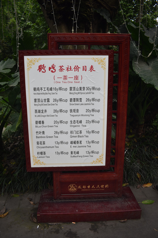 回市区后,直接去了人民公园,了解下成都人民的喝茶文化。人民公园里有间很有名的茶社,茶社挺大,基本都坐满了人,三五成群,喝喝茶嗑嗑瓜子唠唠嗑晒晒太阳,据说在那里点一杯茶可以喝一天,习惯了快节奏生活的人表示也想体验下这样的慢生活。