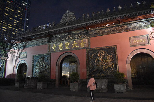 下午回到成都,晚上打卡市中心的春熙路太古里,围观了网红爬墙熊猫和裸眼3D屏,感受成都的繁华热闹。路过太古里的大慈寺,可惜已经关门了,只能在外面看看,开在闹市中心的安静寺院,也是很特别了。晚饭火锅,据当地小伙伴介绍,吃火锅一定要配北冰洋或豆奶。北冰洋是一种瓶装碳酸饮料,很有种小时候喝过的感觉。作为广东人,火锅还是点个鸳鸯锅吧,好在成都的红油锅底没有想象中辣,还是可以吃几口的(但仅限几口就要喝水的节奏)。有一种叫耗儿鱼的小鱼很好吃,没什么刺,必点。于是以一身火锅味圆满结束当天的行程。