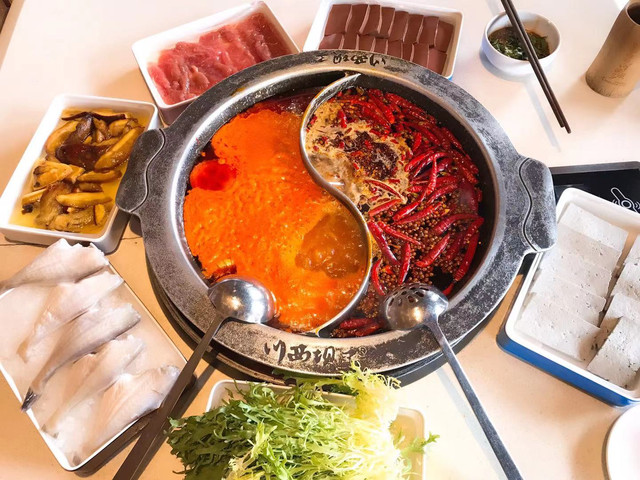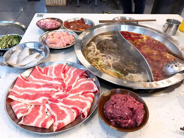 午餐打卡杜甫草堂旁边的火锅店,这家火锅店挺有名气,味道相当不错,而且离景区也近,走得饥肠辘辘正好进去搓一顿。火锅店的菜品是自助的,有一个专区可以直接过去拿,然后用店里发的手环登记就行。红油锅底可以选择辣度,比较照顾外地的朋友,当然我们还是点的鸳鸯锅底,清汤那边是番茄锅,味道也很好。店里的嫩牛肉非常好吃,送的甜豆花很惊艳,特别是吃得比较辣的时候,来一份冰冰甜甜的豆花,太巴适了。