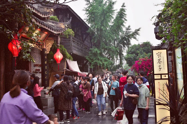 人民公园旁边不远就是宽窄巷子,宽窄巷子是由宽巷子、窄巷子、井巷子平行排列组成的,全为青黛砖瓦的仿古四合院落,也是成都遗留下来的较成规模的清朝古街道。就可逛度而言,感觉宽窄巷子比锦里更好逛一些,这边的店铺比较有特色,种类也多一些。