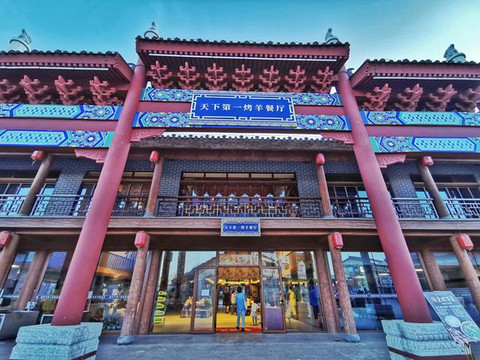 4、晚餐可以选择的范围很多,从出口走出,中餐西餐应有尽有,我们选择了天下第一烤羊,热呼呼吃完,终于可以回酒店养精蓄锐啦。