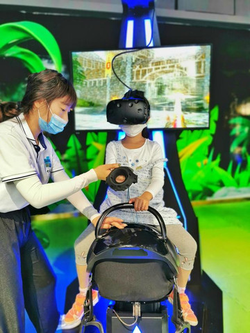 走出马文博馆,对面就是马科普馆,在这里单独消费的机会不多,体验VR骑马打怪兽,是笑笑主动要求的项目,小朋友跨上马背,踩好马镫,戴上眼镜,在工作人员耐心的讲解下,全神贯注打怪兽,笑笑非常喜欢这个体验,一直要求上马再战。