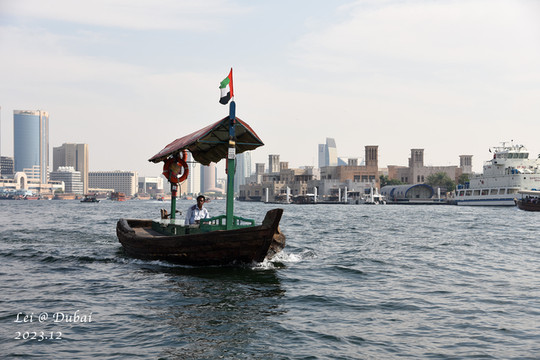 接下来的行程是去了解杜拜的旧城,旧城别具风格,很喜欢这种传统建筑,沙色的平顶屋,沿河而建,杜拜河其实是海湾的海水在沙漠里画了个圈,老城便沿河而建,清真寺,印度庙,各种老市场,有水的地方便有人员往来。在码头花1元钱便可坐船到对岸,好像又回到了威尼斯的大运河上,有趣的体验。