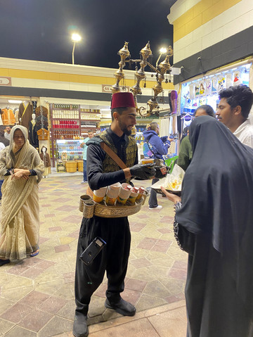 黄金,香料市场只是走吗观花,也在新盖的杜拜老城四处浏览,去了Arabian Tea House Restaurant 常了阿拉伯的奶茶喝传统早餐,78AED非常大的一份,四个人没吃完,饼可以免费加。环境漂亮,食物精美,非常棒的体验。