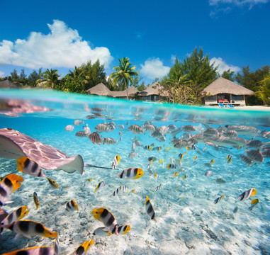 提克豪岛是大溪地亚群岛鱼群密度最高的地方,金枪鱼,鲷鱼,梭鱼,狮子鱼,小丑鱼和鹦嘴鱼等抬眼可见。