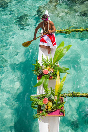 早晨当地人划着独木舟从海面而来,丰盛的早餐送到露台,这是只有在大溪地才有的体验!