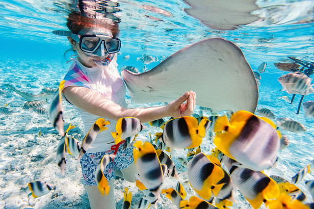 你可以通过潜、潜水、头盔潜水等项目与海洋生物共游,从成群的蝴蝶鱼、鹦嘴鱼到拿破仑濑鱼应有尽有。
