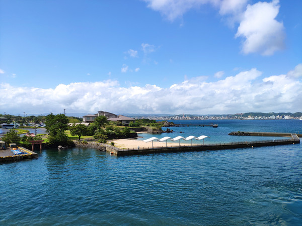 第一站是坐船上樱岛。我们查的交通是先到胁田站坐电车到水族馆换乘,然后就到了可以买去樱岛的船票的地方了。