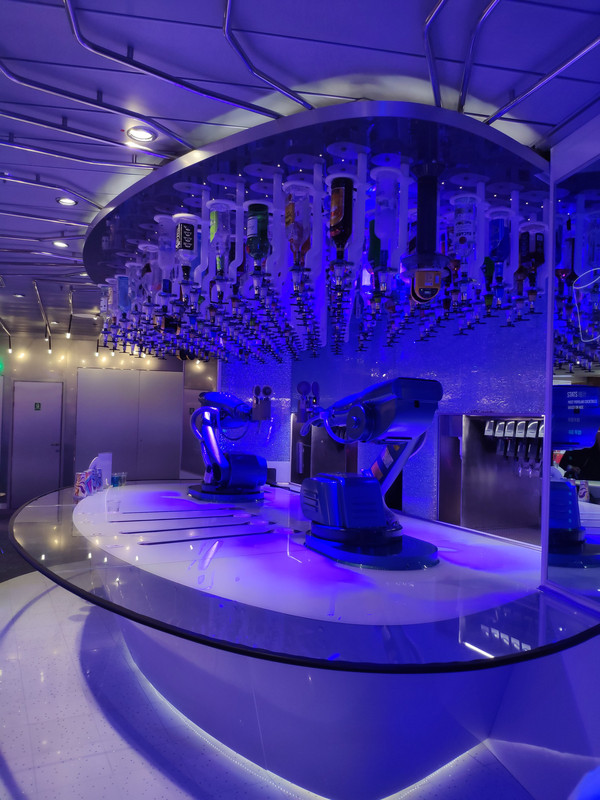 机器人酒吧,服务员说第一杯做的时候出了点bug,免费再送一杯。
