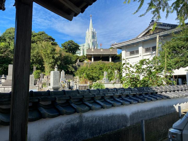 教堂的尖顶与十字架与正宗寺、光明寺、瑞云寺等众多日式寺院屋顶的瓦片交织在一起,东西方文明在这里碰撞与交融,形成有着强烈历史感的独特景观,让人禁不住沉浸其中。