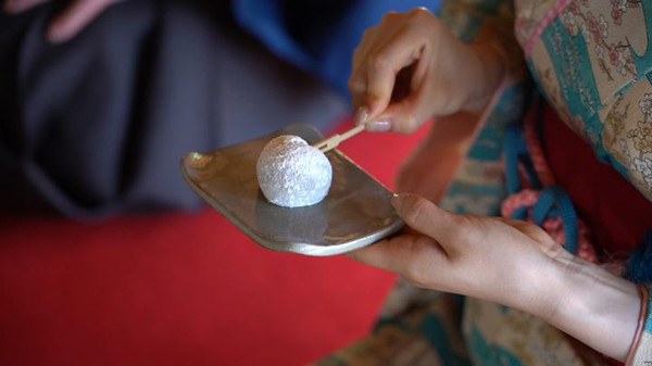 这里使用的茶具朴实而素雅,一位老先生不急不缓的沏茶,每个步骤都非常具有仪式感。在这里也才学习到,原来茶道也是有分不同流派的,不同流派在程序动作上会有细微差别。穿着和服来体验茶道,让大家一下子就融入了茶道的氛围之中,也更能体会到日本茶道“和敬清寂”的意境。