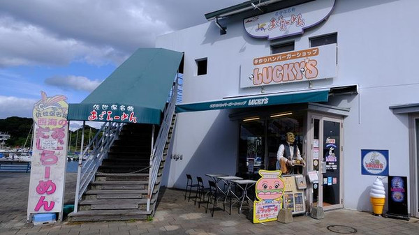 汉堡店的二层则是“飞鱼拉面总店”,据说是日本第一家将飞鱼用到拉面里的店铺。