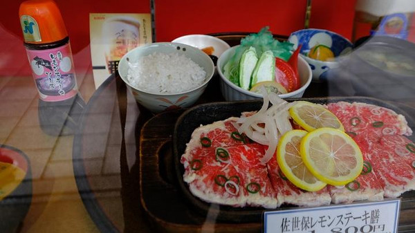 另外一样招牌则是佐世保有名的料理:柠檬牛排。牛肉有着漂亮的大理石花纹,好诱人啊。