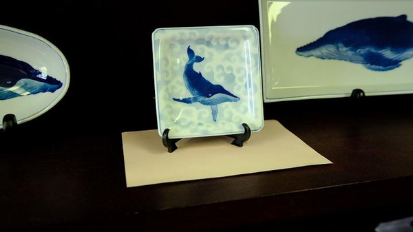 现代艺术家们使用传统的技法,呈现出更具有现代感的图案。这只盘子中的鲸鱼造型灵动,仿佛随时要跃出海面,背后衬托的海水通过深深浅浅的蓝描绘出纹理,让人真的能感受到海面上的波涛汹涌,不禁感叹艺术家的深厚功底。