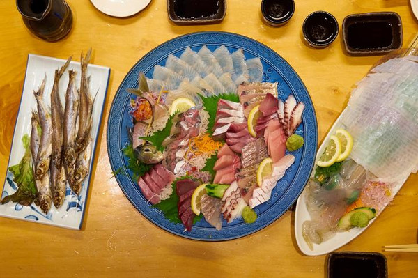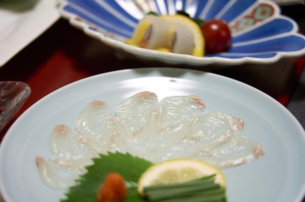 中午吃了有名的平户牛,晚上自然是要饕餮一顿平户海鲜大餐了。平户出产的鱼类种类特别多,能够达到几百种,其中比目鱼、石斑鱼、团扇虾、鲜鱿鱼等最具有代表性。