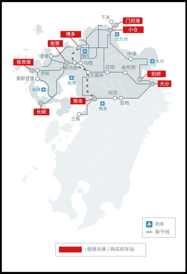 到达日本九州后,需要将在中国国内购买的JR九州铁路周游券兑换券兑换成正式的票券。博多站跟熊本站等一些主要的大型车站,都可以发现拥有绿色JR窗口标记的地方,这里都是可以进行兑换的地方。博多站还有提供专门为外国游客进行兑换的柜台。