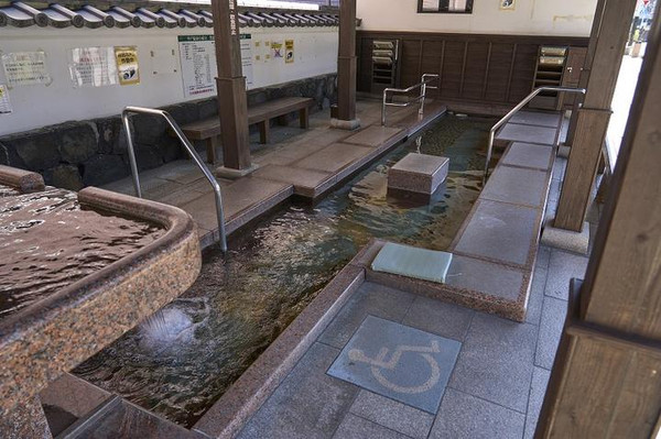 旁边的池子是“腿脚温泉”。脱掉鞋袜,把脚放进热热的泉水中,特别舒服。尤其是在走了很多路后,脚的酸痛泡一泡就没有了。不一会儿,又有当地的几位老奶奶来泡,一边泡温泉一边聊天,看来这样的街边温泉也很受本地人欢迎呢。
