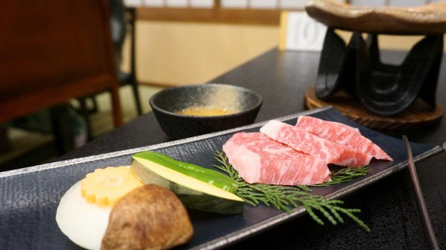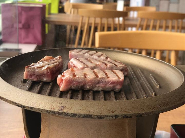 花花点了一份100g的牛肉套餐,在炉子上滋滋地烤起来,相当满足!这是熊本的特产被称作为赤牛,不仅味道十分鲜美更因为数量十分稀少,能品尝到到他的美味的地方也是十分有限的。餐厅里的米饭、味增汤、咸菜都是免费供应的,吃不够还可以加!