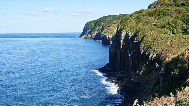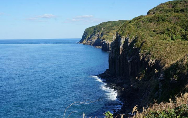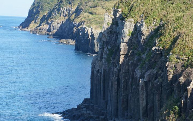 海边的奇景总会特别多,盐俵の断崖是生月岛最特别的风景。南北跨越500米,高20米,悬崖边上布满了很多像是石柱比肩而立的奇怪岩石,据说是2500万-500万前地表变化而成的熔岩台地。这是大海怒涛雕刻而成的自然作品,非常壮观。