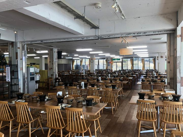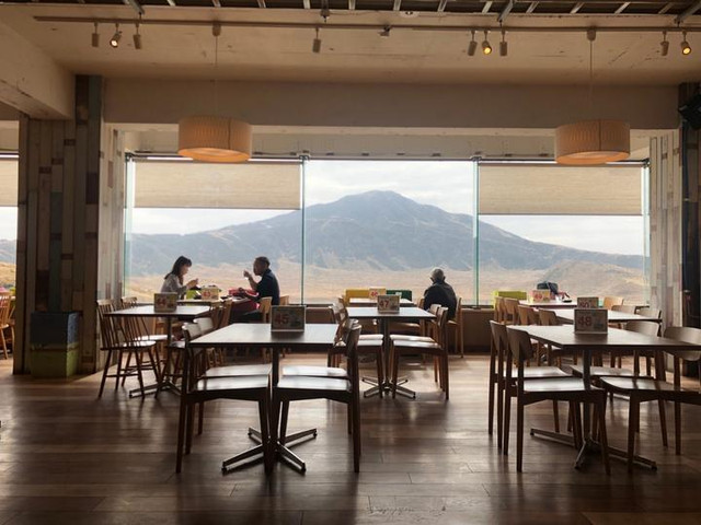 中午的觅食花花选择在博物馆旁边的new草千里餐厅。餐厅的一楼是商品伴手礼店,一上到二楼,落地窗就像是一幅自然画卷,把外面的景色框进来装饰了。