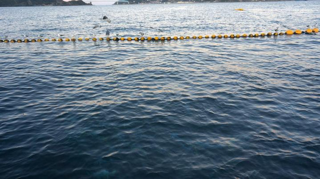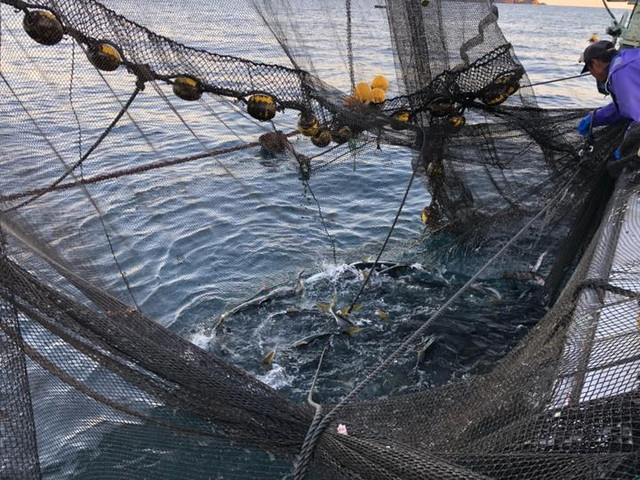 到了定置网的位置,船员便会固定缆绳,启动机器开始收网。