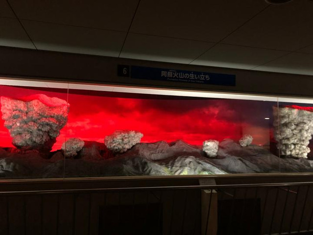 通过巨大的立体模型,大家可以看到阿苏火山形成的全过程,而且还展现得很生动!