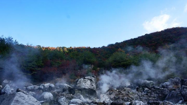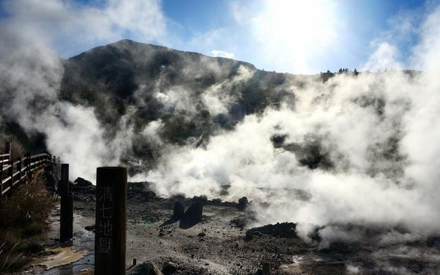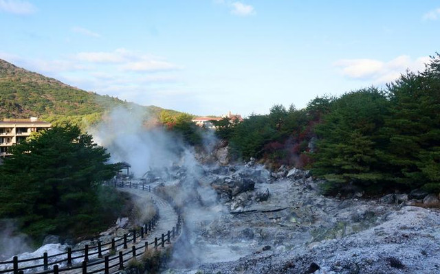 从旅馆出门步行3分钟就能去到云仙地狱,还没走到,空气中也已经开始弥漫着硫磺的气味。在云仙地狱,你可以近距离地感受被仙气包围的体验,大白天的也会伸手不见五指。