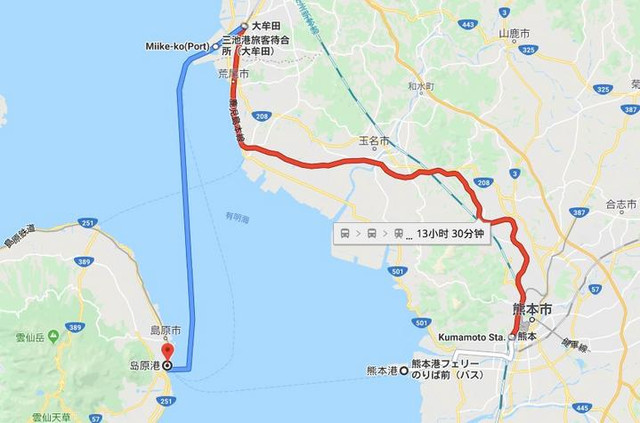 方法总是比困难多的嘛!现在我们过大海已经可以方便很多了!不用绕路,直接搭渡轮过去就可以了!从熊本港去到长崎县的岛原港,只需30分钟!