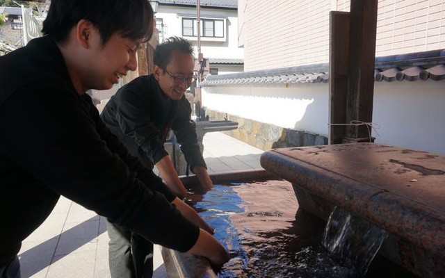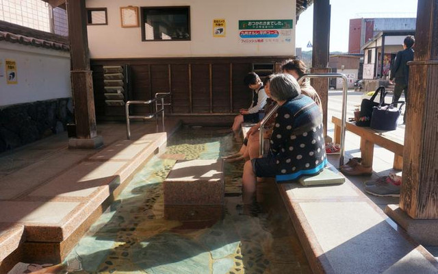 在平户的街道边,花花就发现了一个手臂温泉、腿脚温泉。逛累了,你也能在游玩途中过来泡一泡,非常好玩。