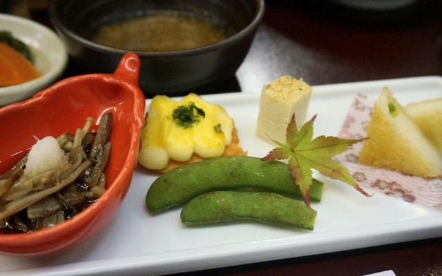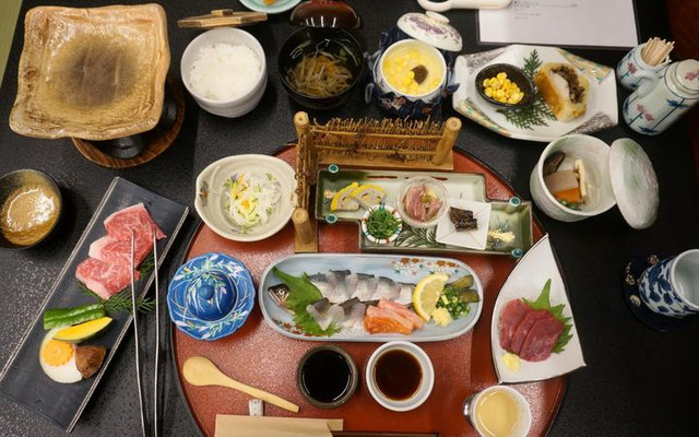 在旅馆餐厅花花还品尝到了岛原特别的怀石料理。在预约好的用餐时间,旅馆会提早把菜品布置好,一去到就能开吃啦!