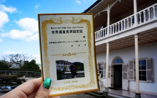 进入公园,最先看到的是这栋建筑——三菱第二船坞宿舍旧址。在园内还有免费和这座世界遗产合影纪念的证书,大概等3、5分钟就能拿。像花花这种小小的证书是免费的,如果需要加印大张的就需要额外给钱了。