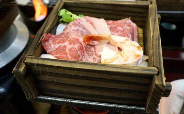 像是这道长崎牛肉+海鲜的组合,就是在上桌之后才开火蒸煮。多汁软嫩的牛肉,一口吃下去,感觉整个人都满足了。餐厅里有会说中文的员工,那就不怕会交流不了啦!而且他们的服务也很好,经常及时过来询问是否需要收走盘子或者加茶之类的。整顿饭下来体验感就不错了。