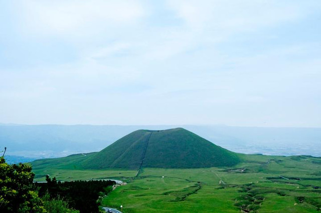 站在大观峰展望台,世界最大规模的重叠式山脉、一望无际的草原都是360度全方位地展现在你眼中。特别是从此处远眺时,恍惚中竟会像看到释迦摩尼的头颅、高岳为胸部而中岳为腹部,整个阿苏五岳相连的姿态也被蒙上了一层神秘缥缈的色彩。