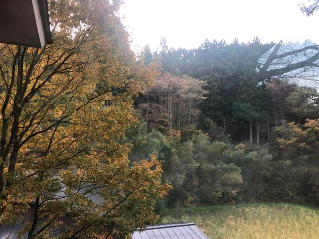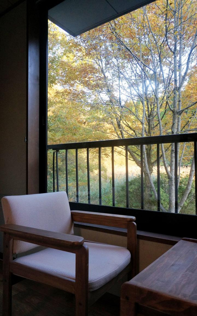 旅馆在半山坡上,像是拥有一个天然的后院,被黄叶拥抱的环境真的过于美好。
