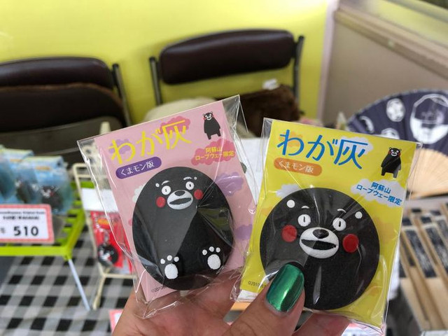 从大观峰下来,花花在阿苏站踏上了前往阿苏火山口的道路。等等别着急!在阿苏站里有阿苏火山灰限定制作而成的熊本冰箱贴、钥匙扣等伴手礼!是不是会比一般的出品更特别一些呢?