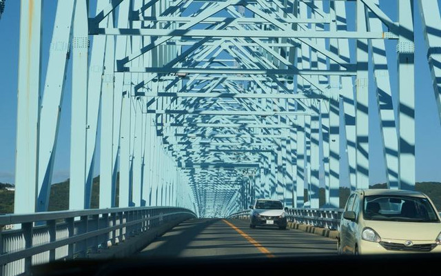 在平户不得不说的两座跨海的大桥,红色的平户大桥和蓝色的生月大桥。