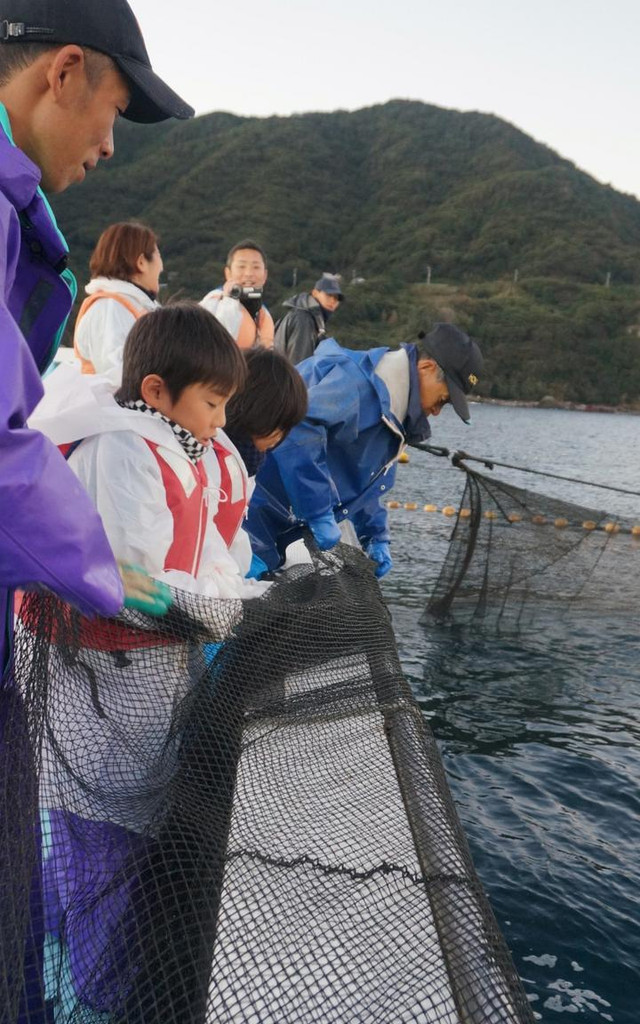 如果是亲子游来到平户,花花真心推荐这个项目。平时生活在城市里的孩子看海吃鱼就多了,但是能亲手捕大鱼的经历却是很难得的。而且操作不难,跟着船员的口号,一起用力把网从水里拉上来,一边拉,一边可以看到大鱼从水中慢慢浮现!乐趣瞬间就出来了!