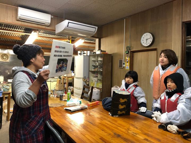 先别着急着出海!出发之前记得要听好船家做的安全提示。得知花花听不懂日文之后,店家也拿出了带有中文的提示牌,毕竟安全第一呀!船家会提供雨鞋、雨衣、救生衣、手套等基本装备!完全不必担心会被弄脏或淋湿!然后我们就可以去捕鱼咯!