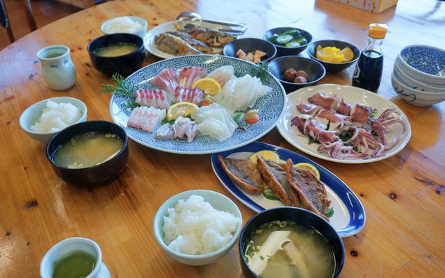 在回程的船上,肚子开始咕咕叫才忽然发现,原来今天还没有吃早餐!不过一上岸就有美味的鱼鲜在等着你了。这家由船长家妻子主理的料理店就开在港口旁边。