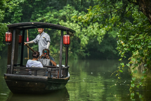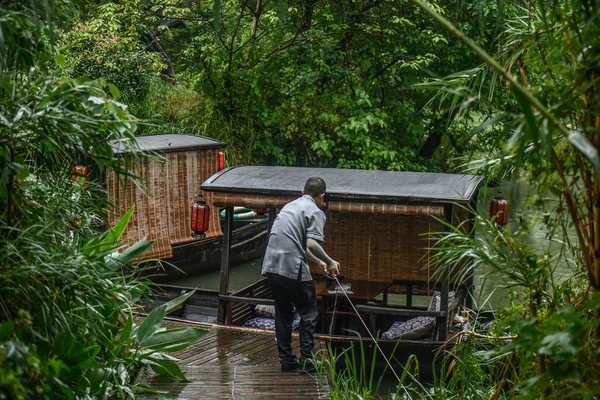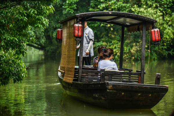 【杭州唯一有码头的酒店,以摇橹船下午茶为特色,游客慕名至此】
