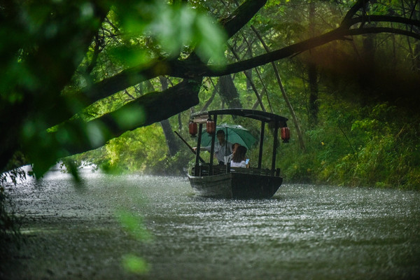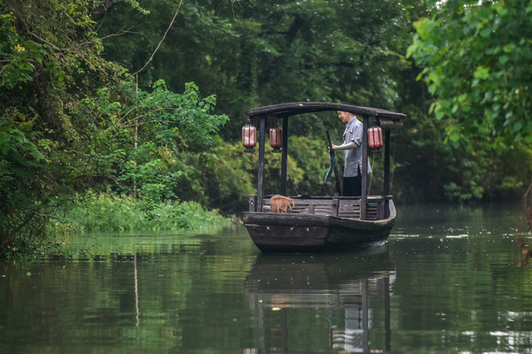 梅雨时节的江南虽然经常下雨,但是却有着言烟雨江南的诗意风光。尤其是选择一个带有下午茶的橹船上畅游西溪湿地,这种感觉非常好。会觉得自己已经被这种秘境般的环境所诗化了!