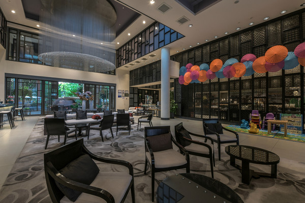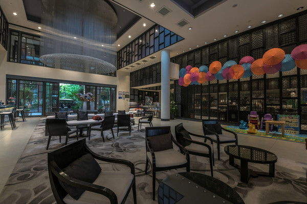 与其他五星级酒店一样,服务水平都是一流的,这个就不用赘述过多了。前台前方的空间就是客人休息大厅,虽然整个大厅汇聚了餐厅、休息厅、前台、礼宾部等诸多片区,但是设计科学、布局合理,感受不到有意思的拥挤与突兀,这一点山野君非常喜欢。