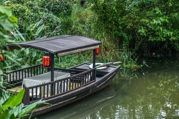 这里就是西溪悦榕庄的公共区域,环境超级给力,典型的江南园林气息让人回味无穷。在别墅区也能够乘坐摇橹船的,整体的体验感超赞,想不想体验一番呢?