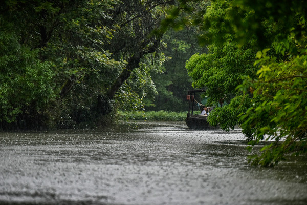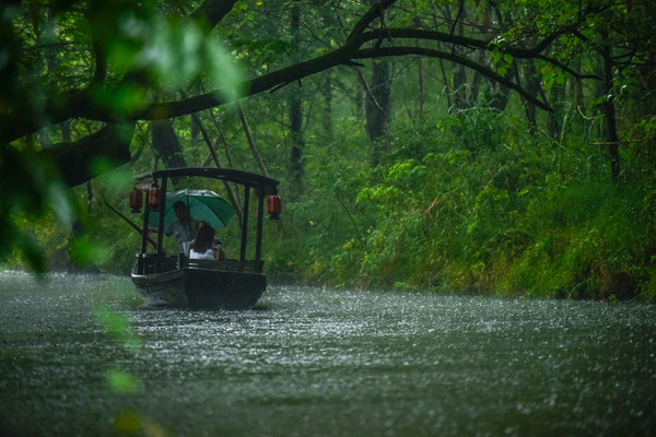 【梅雨时的一场暴雨,摇曳了安静行驶的橹船,生出烟雨江南的诗意】