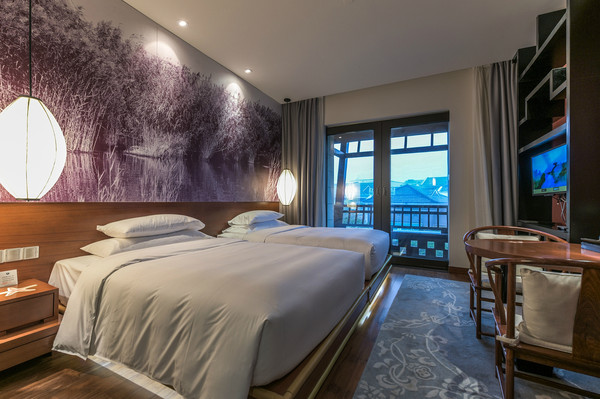西溪湿地悦椿酒店虽然公共区域不大,但可以与悦榕庄酒店公共区域共享,住进悦椿的客人可以享受悦榕庄这种几千元级别酒店的配套设施,比如属于自己的西溪私家湿地园林。很多人都以为只有住进悦榕庄酒店才可以享受悦榕庄的西溪湿地私家园林,其实不然。