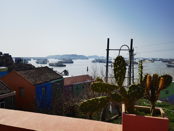 从远远地可以看到小箬村的全貌,车辆就开始行使缓慢了。进村的车辆被指挥着分流绕道,我们排着队缓缓而行,一侧是停放着的大大小小的渔船的港湾,好在,幸运的在村下的停车场顺利找到了车位。突然,这个七彩的小村庄就这样近的呈现在眼前了。一下子就感觉眼花缭乱了,不知从哪里开启行程好。