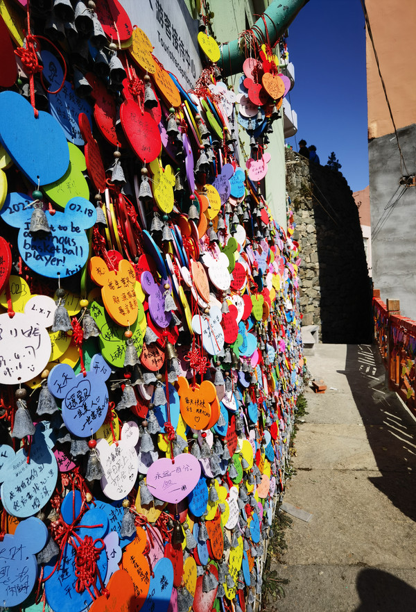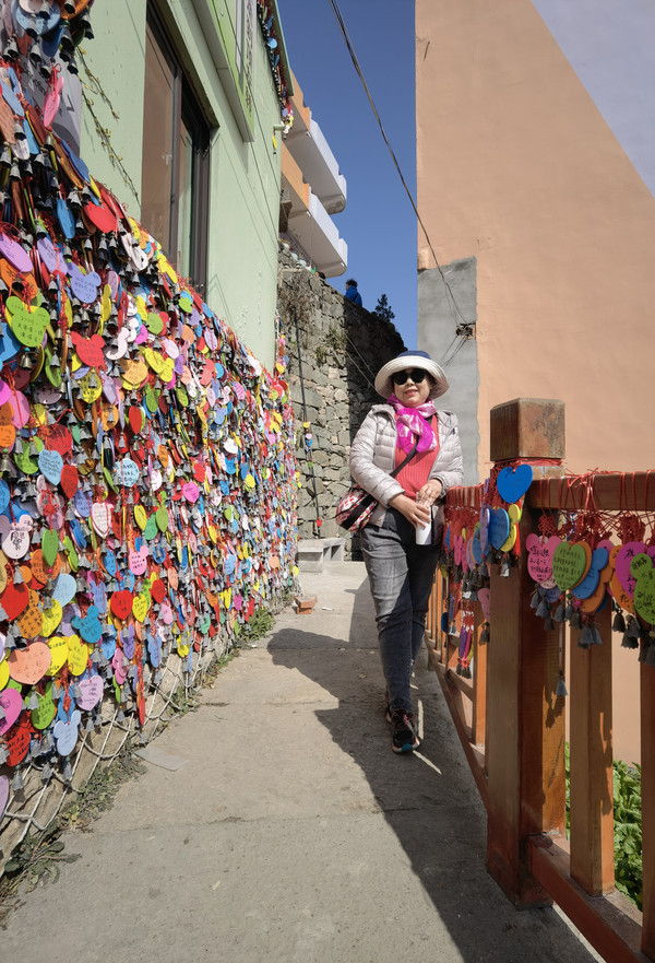 村庄依山傍水,渔民的渔船停靠在岸边,房屋错落间,可以眺望到大海和渔船,在这里,尽可以随心而走,随意而行,处处是美景。悬挂着的彩色许愿卡,形成了另一道靓丽的风景,我忍不住挑选了两个,带回家写上心愿悬挂起来吧!