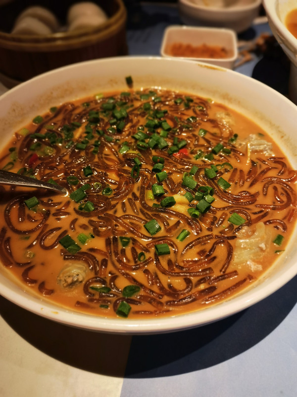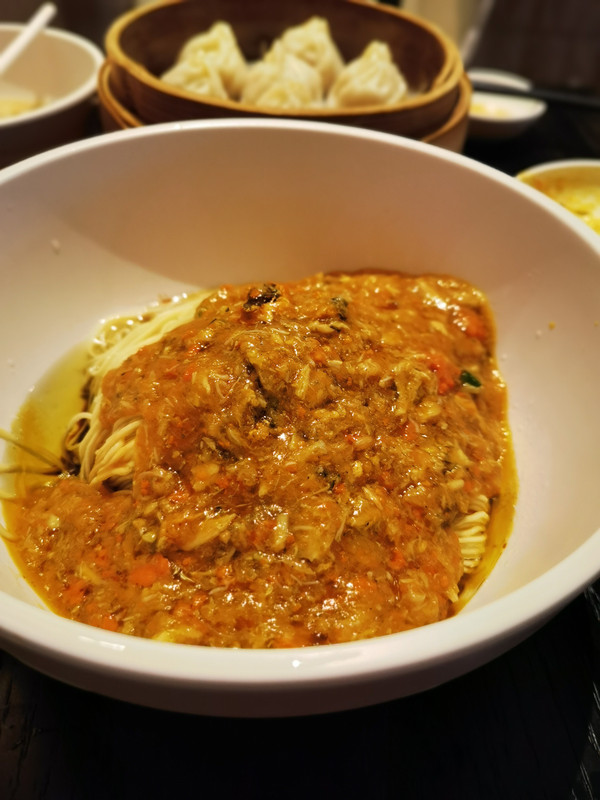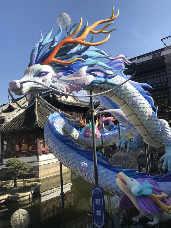 沿外滩,一路向南行走,来到了豫园商城。四个月前来时,豫园商场是随便进的,商城很大,里面有很多店铺,只有进豫园和城隍庙是需要单独买票的。这次正好是春节,里面办了灯会,整个商城被围了起来,只要进商城,就需要购买八十元一张的门票。俗话说:来都来了!下一次又不知道是多少年之后的相遇了,我俩买票进入了商城。先找了一家餐厅,解决午餐。蟹面、小笼包、馄饨、蟹黄灌汤包各点了一份品尝,都是主食,很快吃饱。