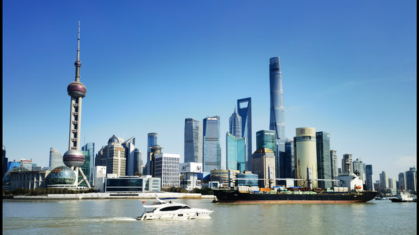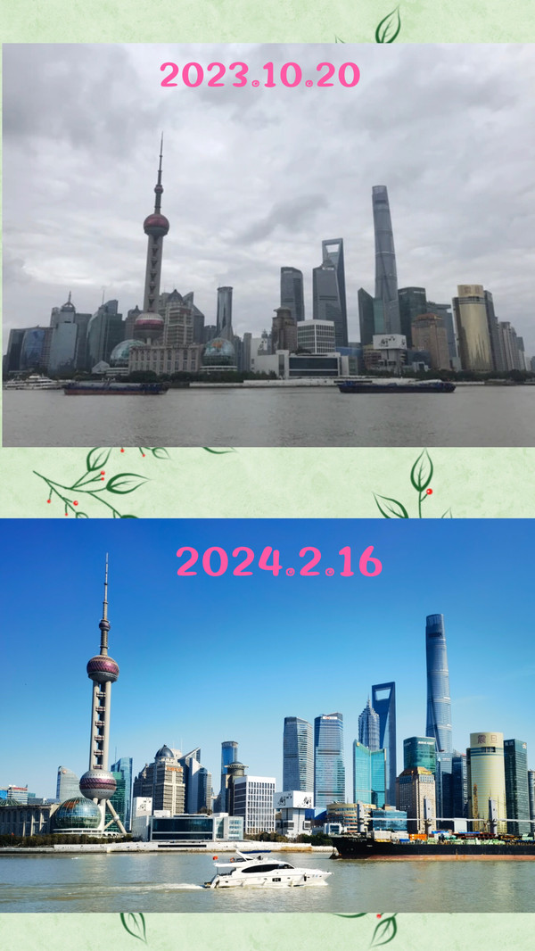 天气晴朗,蓝蓝的天空,把东方明珠和陆家嘴三件套等现代感十足的景观,衬托得多了几分柔美。