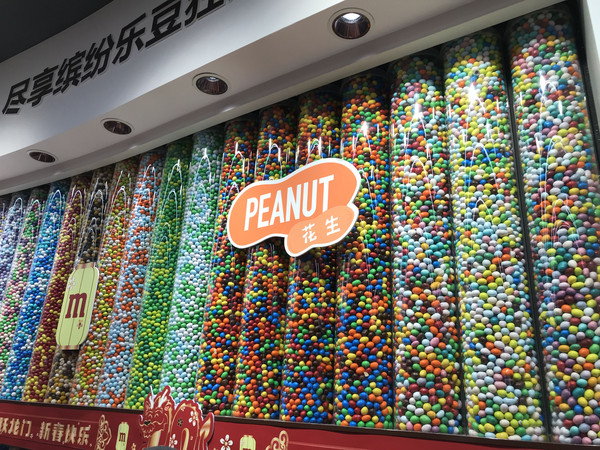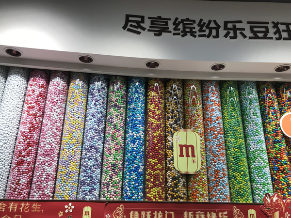 饭后,正式走进南京路,感受第一步行街的繁华。MM豆巧克力世界,一进去就被各种巧克力制品和各种色彩的巧克力豆吸引了目光,特别是巧克力豆,颜色丰富,自取的方式吸引着很多小朋友和大朋友,让人很有购物的冲动。我们看着排队结账的人群,还是算了!
